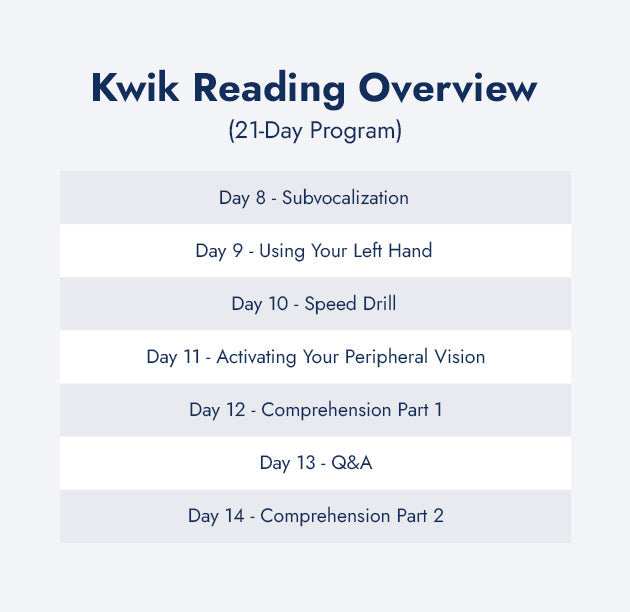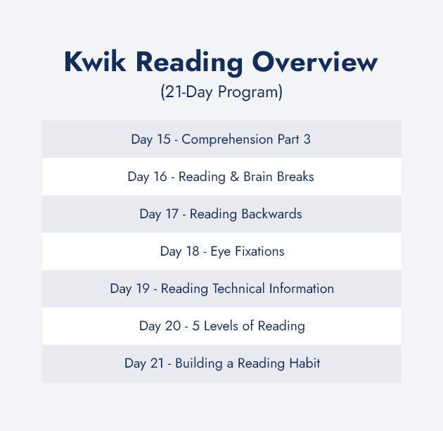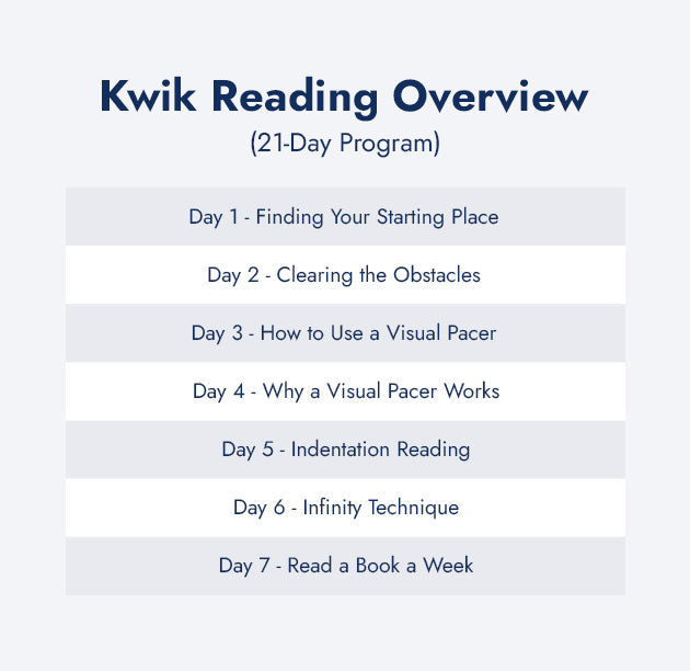 The Kwik Reading Program helps you improve the four key elements of reading: