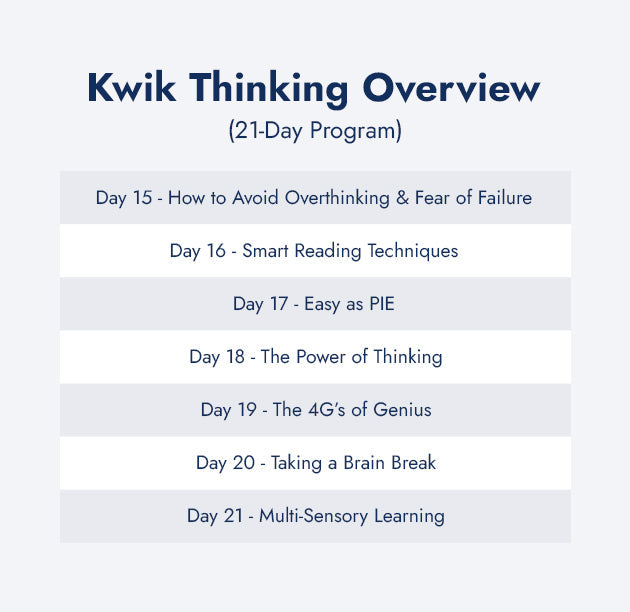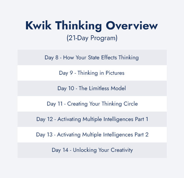 With my ultimate meta-thinking program called, Kwik Thinking, you and I will train for 21 days together to give you all the necessary tools to apply it towards what you're learning today.